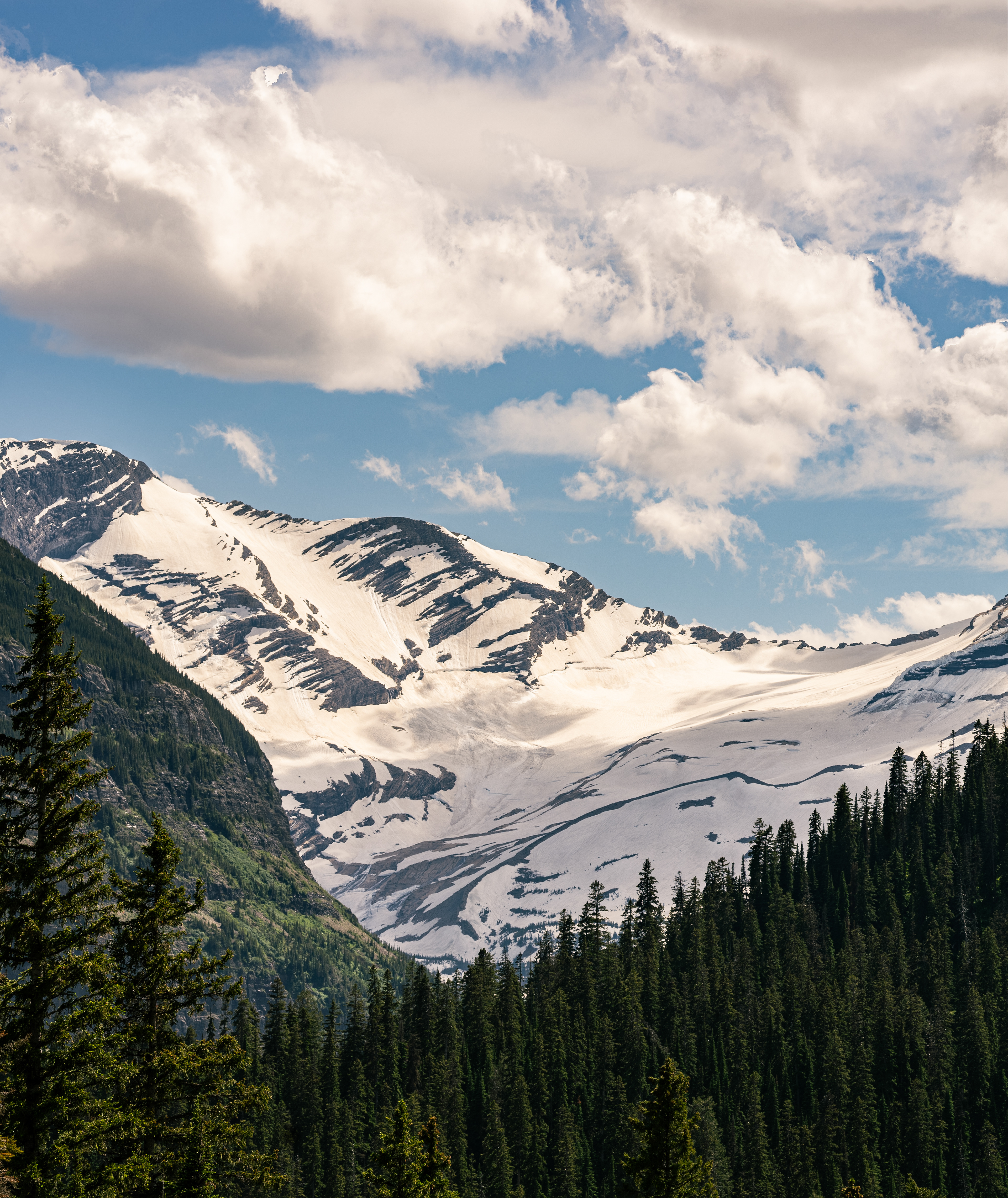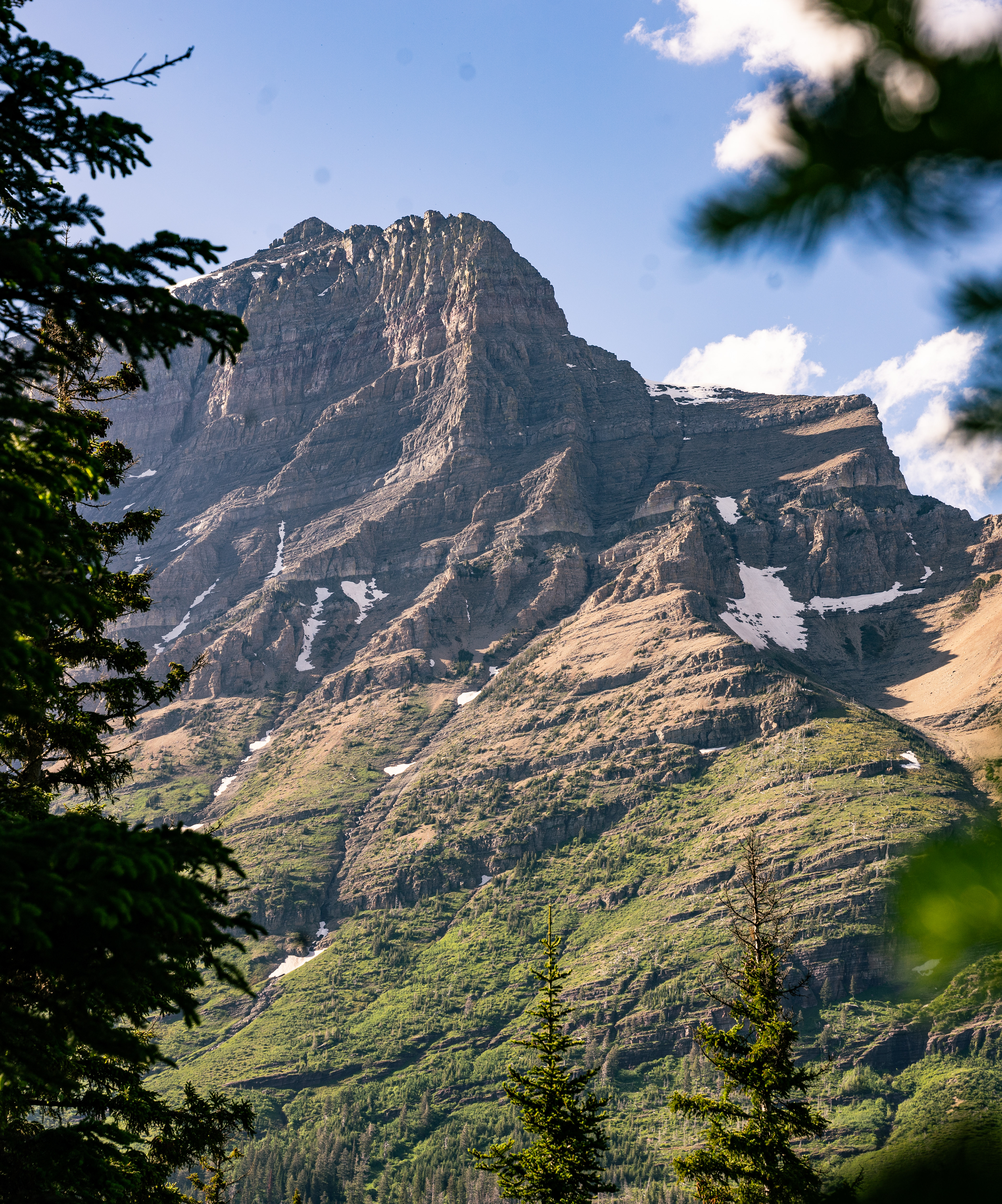 A mighty mountaintop amidst the lush green forest below. Glacier National Park