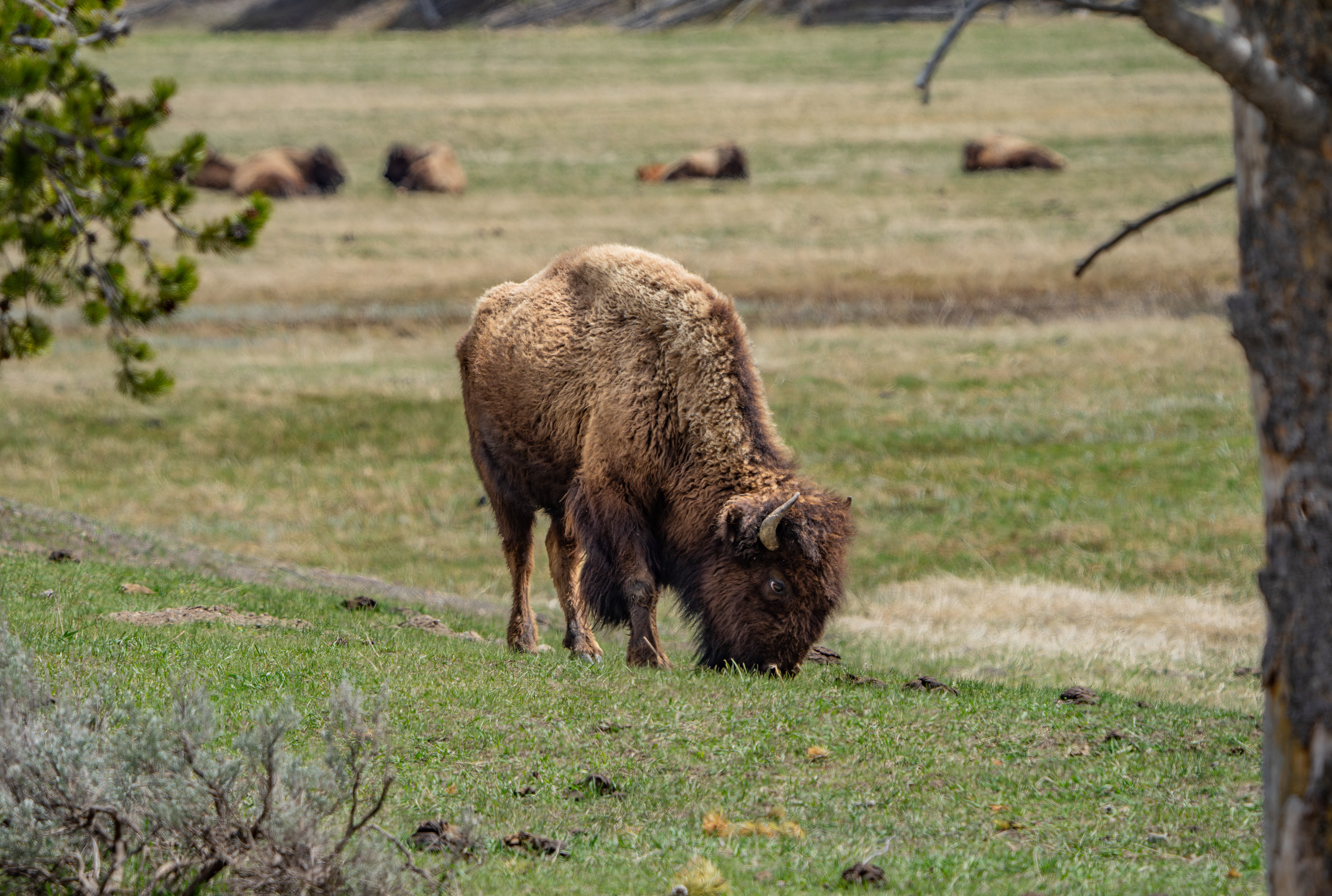 A young bison, grazing through the field during golden hour in Grand Teton National Park Pt. 2